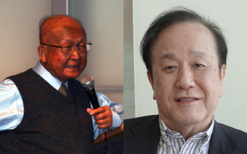 (写真1) 左)尾形 悦郎 先生(2008年11月、尾形悦郎先生の喜寿をお祝いする会にて)