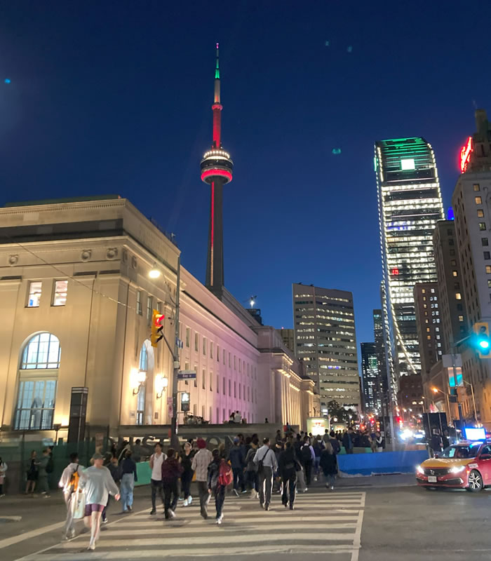 カナダは初めて行きましたが、アメリカとはまた雰囲気が異なり、食事とビールも美味しかったです。また、夜に見たCNタワーのライトアップも綺麗でした。