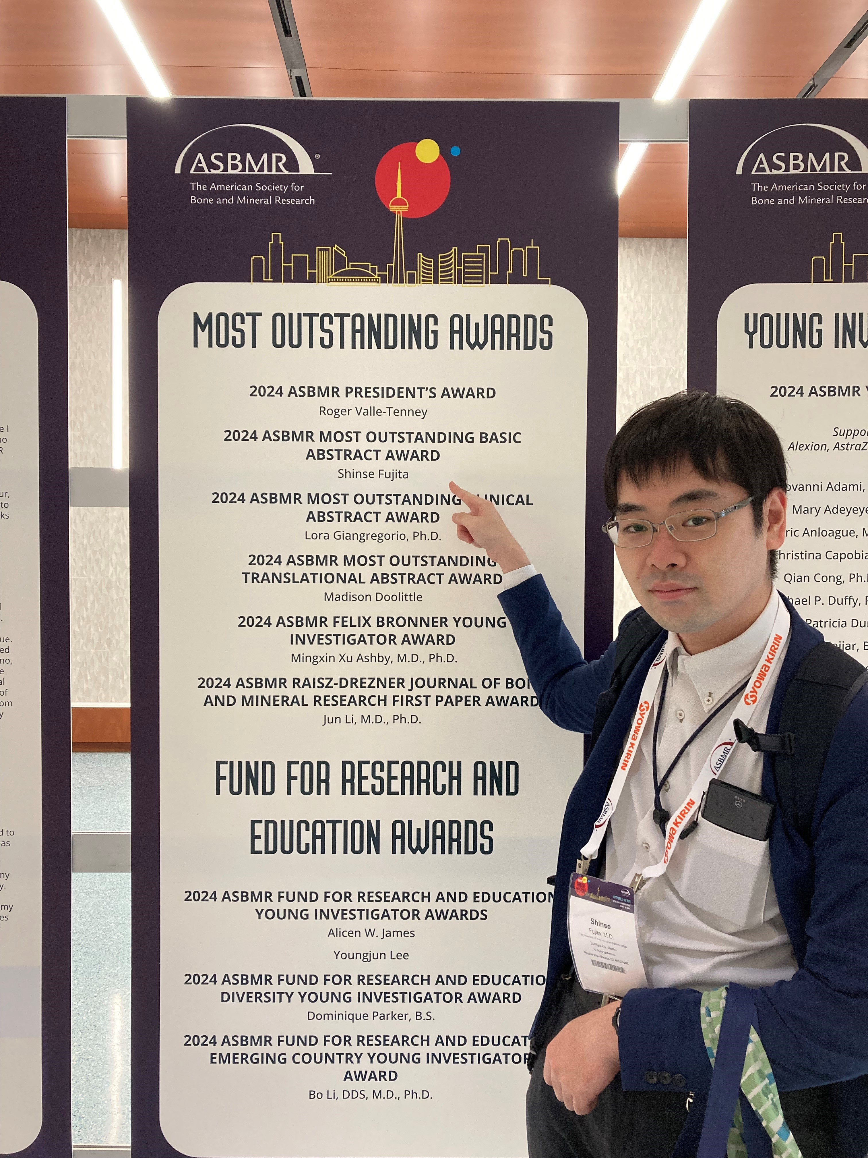 2024 ASBMR MOST OUTSTANDING BASIC ABSTRACT AWARDを頂戴しました。