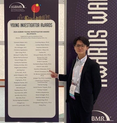 カナダのトロントで2024年9月26日―30日に開催されたASBMR 2024 Annual Meetingに参加しました。国際学会での発表が初めてでしたが、大変光栄なことに、Young Investigator Awardを受賞することが出来ました。顎関節症は罹患患者数が多いにも関わらず、根本的な分子病態メカニズムが解明されていない研究分野であり、私はその病態メカニズムをマウスモデルを用いて解析しました。ASBMRにおいても、顎関節に焦点を当てた研究は少ないことから、基礎研究からのアプローチとトランスレーショナルリサーチが必要であると実感しました。