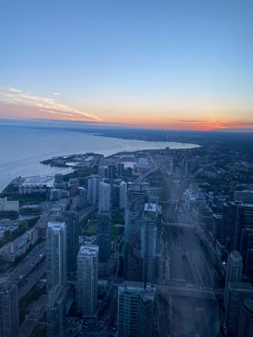 トロントの街のシンボルである、会場の真横に聳え立つCNタワーからのサンセット