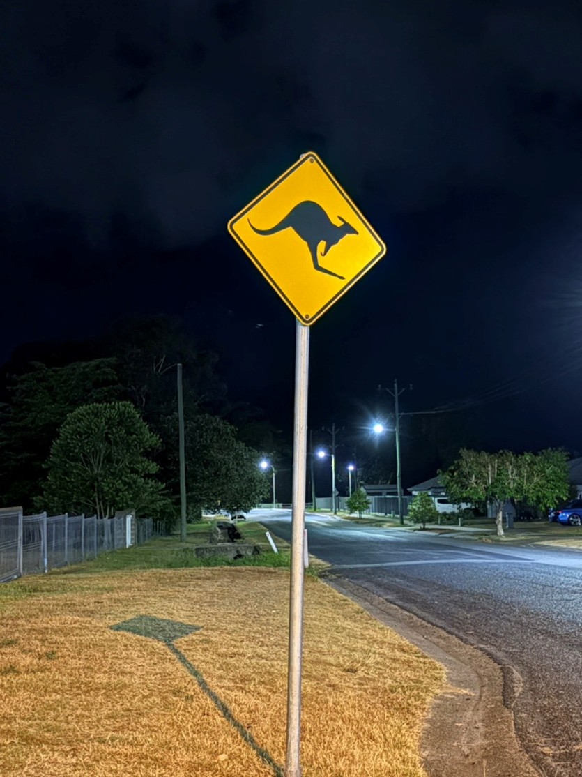 オーストラリア名物のカンガルー飛び出し注意の看板